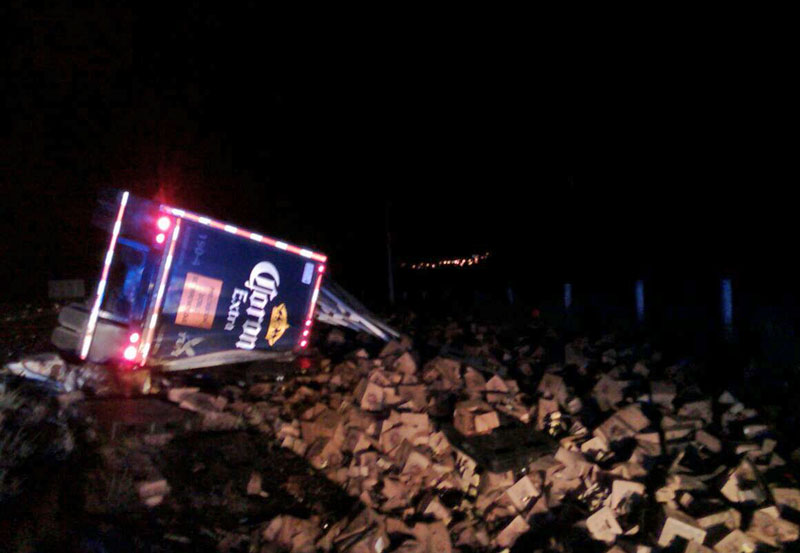 Dicha unidad arrastraba dos remolques cargados con cerveza, el cual se encontraba volcado sobre su costado derecho, por lo cual se dieron a la tarea de auxiliar al conductor que se encontraba en el interior del tractocamión, con golpes en diversas partes del cuerpo.