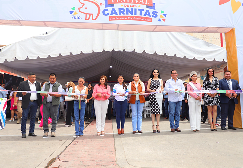 Con gran éxito, la gobernadora de Aguascalientes, Tere Jiménez, y la presidenta de San Francisco de los Romo, Margarita Gallegos Soto, inauguraron el 7º Festival de las Carnitas, que se desarrolla este fin de semana en San Pancho.