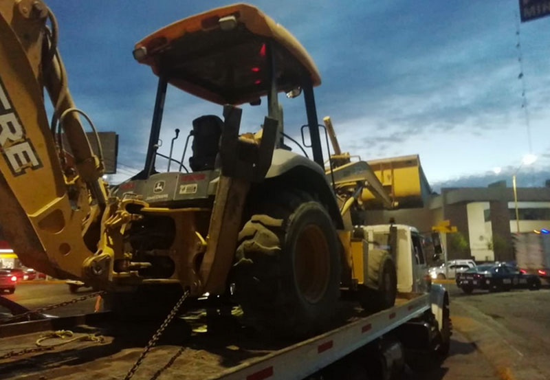 Por lo anterior, los oficiales se aproximaron para revisar la unidad y se percataron que el número económico coincidía con el de la retroexcavadora robada, sin embargo ya le había sido retirado el logotipo de la empresa.