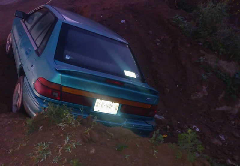 Fue minutos después de las 7 de la mañana de este miércoles cuando uniformados de la policía preventiva del Destacamento Terán Norte que se encontraban realizando su recorrido de vigilancia sobre la calle Mártires de Río Blanco y Avenida Poliducto, detectaron un vehículo de la marca Ford tipo Escort, modelo 1995, en color verde con placas de circulación ACB848A del Estado de Aguascalientes que se encontraba accidentado a un lado de la vía.
