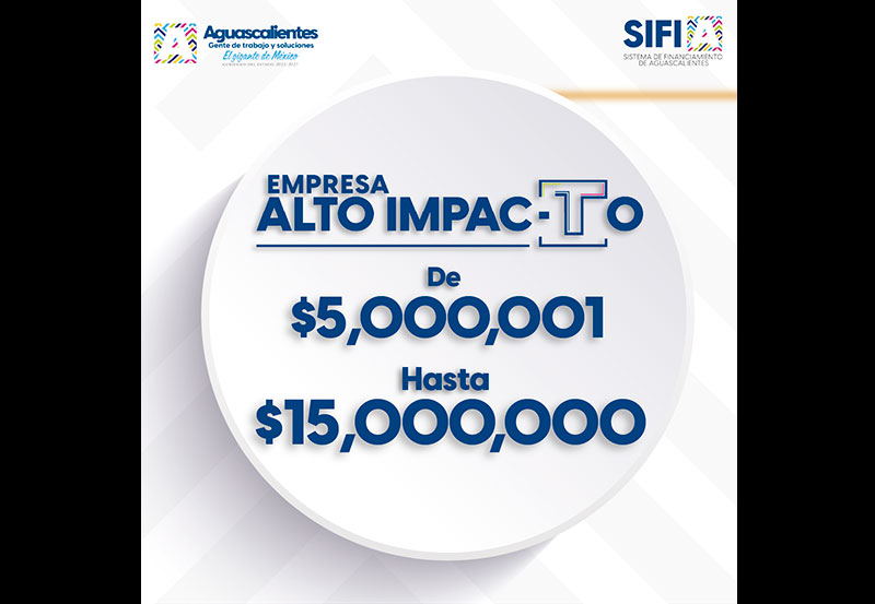La gobernadora de Aguascalientes, Tere Jiménez, anunció que ya se encuentra disponible el programa Alto ImpacTo, con el que a través del Sistema de Financiamiento de Aguascalientes (SIFIA) se busca apoyar a los emprendedores y empresarios del estado para que mejoren o hagan crecer su negocio.