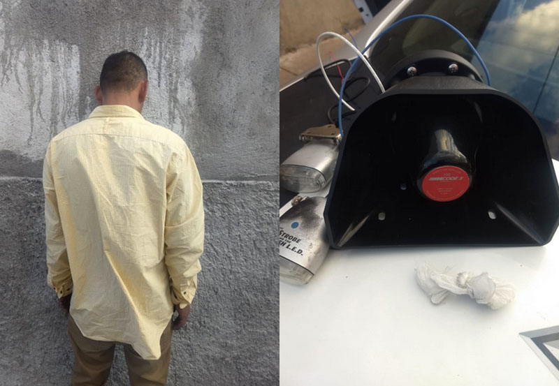 Adicionalmente, se le detectó una bocina para sirena y un par de estrobos, los cuales coincidían con las características de objetos previamente reportados como robados de un domicilio en la misma colonia.