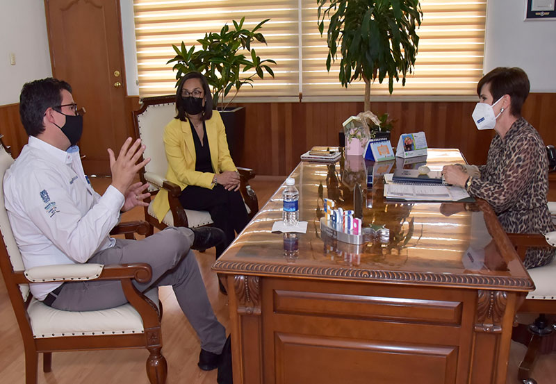 La presidenta del DIF Estatal, Yolanda Ramírez de Orozco, recibió en sus oficinas al Secretario de Desarrollo Social, Humberto Javier Montero Alba, con quien se acordó estrechar lazos de colaboración para fortalecer las acciones que emprende la Secretaría de la Familia, de tal manera que el trabajo sea transversal y los beneficios de las políticas públicas lleguen lo antes posible a las zonas de atención prioritaria, en donde residen las familias con mayores necesidades sociales.