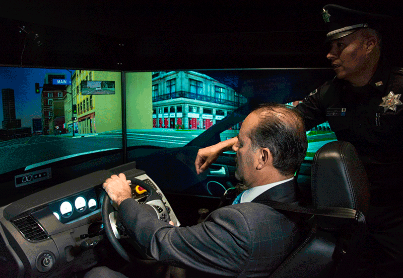 Con el objetivo de mejorar la profesionalización de las corporaciones policiacas y en consecuencia la seguridad de los aguascalentenses, el Consulado de los Estados Unidos de América en Guadalajara hizo entrega en calidad de donación de un simulador de manejo cuyo costo se calcula en 197 mil dólares.