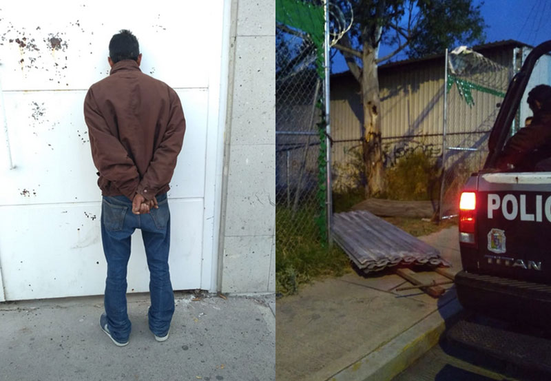 Por lo anterior, los elementos inspeccionaron el área, logrando detectar efectivamente a un individuo que parecía estar huyendo de una bodega, llevando consigo varias láminas metálicas.