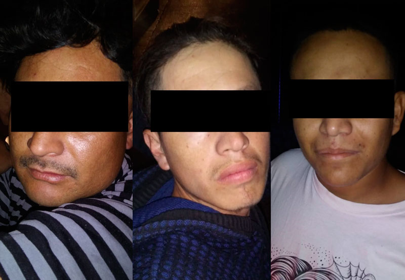 Se trata de quienes dijeron llamarse Daniel de 23 años originario de Zacatecas; Andrés Alejandro de 21 años, originario de Aguascalientes y Aldo Axel de 34 años, originario de Sonora, a quienes se les efectuó una inspección corporal, sin que se detectaran objetos o sustancias ilícitas en su persona.