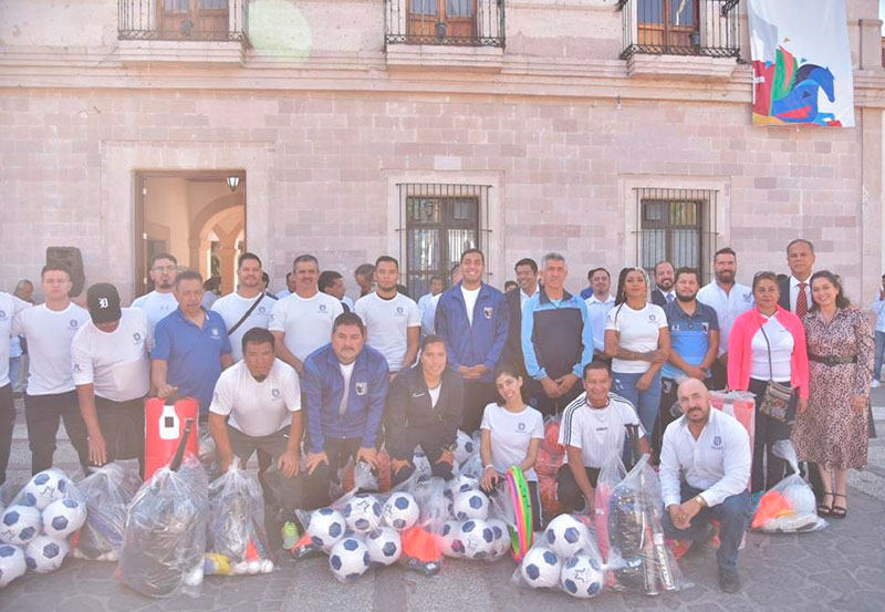 Este día, el presidente Antonio Arámbula, hizo entrega a los maestros de las Academias Deportivas Municipales de Jesús María, material y equipo como refuerzo a su formación como deportistas.