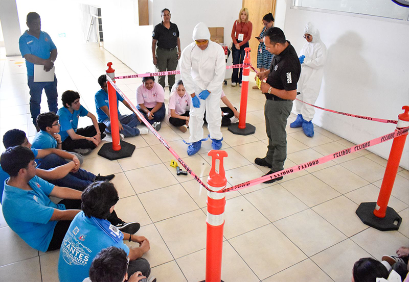 Dicha institución está conformada por profesores miembros del Sindicato Nacional de Trabajadores de la Música, así como por 25 alumnos destacados de diferentes planteles educativos, de entre 12 y 19 años de edad. Esta agrupación tiene 8 meses de creación, en donde se imparten distintas disciplinas de la música, artes escénicas, oratoria e interpretación, bajo la dirección del Lic. Francisco Fabela Coordinador General del Mariachi Monumental Gigantes de Aguascalientes.Durante la visita guiada, alumnos y profesores recorrieron las distintas áreas del Complejo de Seguridad Pública Municipal, entre ellas Armamento, Juzgados Cívicos, el Instituto Superior en Seguridad Pública Municipal, la Unidad Municipal de Atención Inmediata (UMAI) y el C4. Asimismo, presenciaron una demostración de la Unidad Canina Municipal K-9 y participaron en diversas actividades dinámicas.