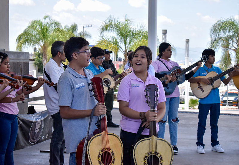 La Secretaría de Seguridad Pública Municipal de Aguascalientes, a través del Departamento de Prevención de las Violencias y la Delincuencia, recibió la visita de la escuela de música Mariachi Monumental Gigantes de Aguascalientes.