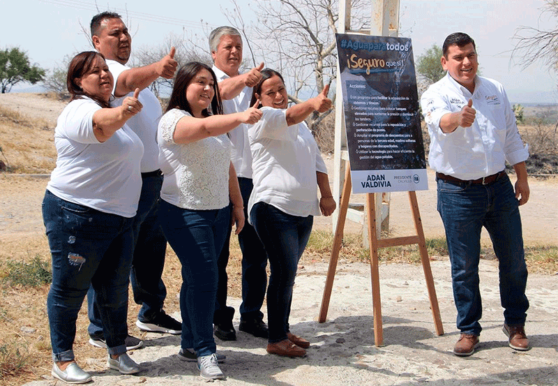 Acompañado por los integrantes de su planilla, al pie del tanque elevado del fraccionamiento El Mirador, en la cabecera municipal, hizo la presentación de la propuesta de plan estratégico para garantizar el abasto de agua, y detalló que se tienen contemplado el mantenimiento de pozos, la perforación de más de ellos, y el empleo de más tecnología que permita al organismo operador de agua, una gestión más eficiente de este vital liquido.