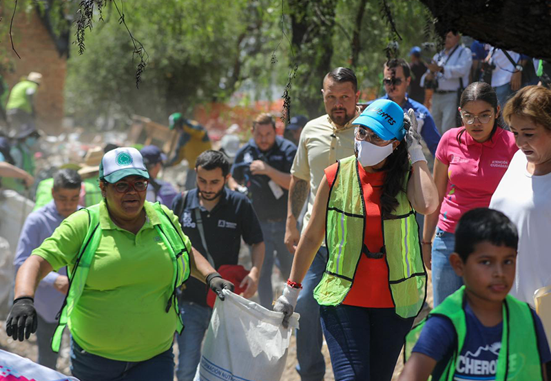 Durante el evento que se realizó en la zona del río San Pedro a la altura de la colonia Curtidores en la ciudad capital, Tere Jiménez también encabezó una megalimpieza en las márgenes de este afluente, en la que participaron servidores públicos del Gobierno del Estado y de la Presidencia Municipal de Aguascalientes, así como empresarios, estudiantes y organizaciones de la sociedad civil; con esta acción se dio inicio oficial al proyecto de rehabilitación integral para la recuperación y saneamiento del río San Pedro.