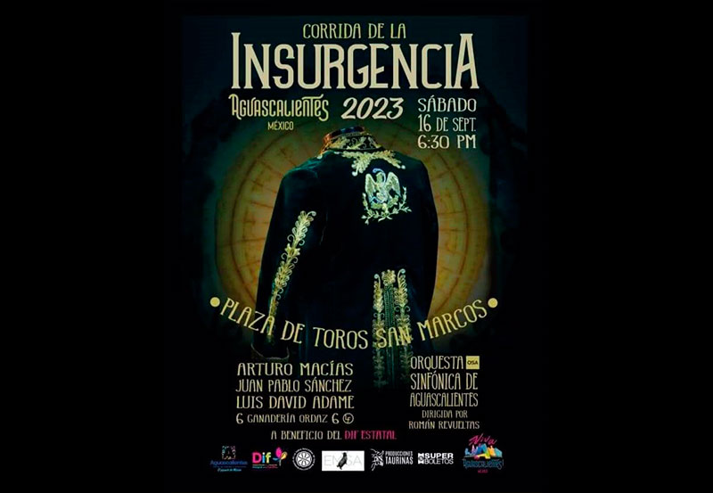 Aguascalientes se ha erigido como la capital de la tauromaquia americana, por lo que el próximo 16 de septiembre se presentará la Corrida de la Insurgencia, en la que seis toros de la Ganadería Ordaz serán lidiados por tres toreros orgullosamente de Aguascalientes: Arturo Macías el Cejas, Juan Pablo Sánchez y Luis David.