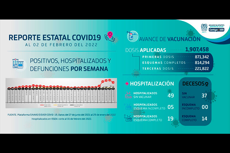 El Instituto de Servicios de Salud del Estado de Aguascalientes (ISSEA) informó en su reporte semanal la aplicación de 1 millón 907 mil 458 vacunas, lo que corresponde a 814 mil 294 personas que han recibido su esquema completo y 221 mil 822 incluso ya tienen su refuerzo.