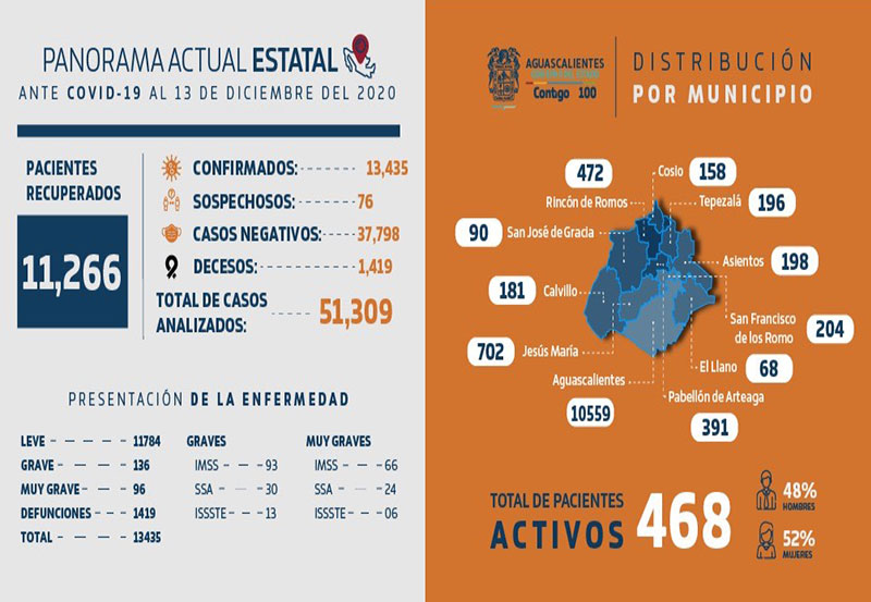 Asimismo, la detección oportuna de 13 mil 345 casos positivos ha favorecido el seguimiento médico y atención puntual de quienes han transitado por la enfermedad en sus domicilios o que han sido atendidos en unidades hospitalarias de acuerdo a su derechohabiencia; en las últimas 24 horas se sumaron 75 casos positivos y 13 defunciones.