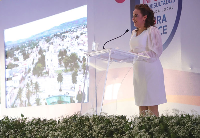 El presidente municipal de Jesús María, José Antonio Arámbula López acompañó a Laura Ponce Luna diputada por el distrito VII, durante la presentación de su Primer Informe de Resultados.