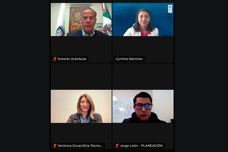 En la reunión que se llevó a cabo de manera virtual, participaron también Alejandra Martínez González, coordinadora del proyecto Implementación de la Agenda 2030 a nivel subnacional PNUD México; Cinthia Martínez Domínguez, oficial nacional de la Unidad de Desarrollo Social y Económico PNUD México; Adrián Escudero Gómez, especialista en Análisis Cualitativo y Visualización de datos PNUD México; Dominique Rodríguez, Administradora del Proyecto; Verónica Durán Alonso, secretaria técnica de presidencia; Jorge Antonio León García, encargado de planeación en el municipio y los titulares de las dependencias municipales.