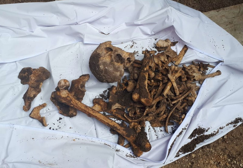 Luego del arribo del personal de servicios periciales, estos se encargaron de exhumar los restos humanos para realizar los exámenes correspondientes, manifestando que pudiera tratarse de una osamenta enterrada hace muchos años sin precisar temporalidad.