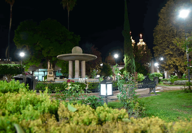 El tradicional Jardín de Zaragoza (popularmente conocido como el Jardín de los Mariachis) cuenta ya con una moderna iluminación LED. Además de incrementar la seguridad pública, realza los elementos arquitectónicos y las áreas verdes que se encuentran en el lugar.