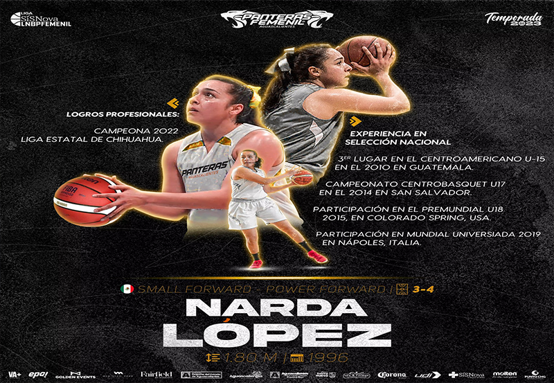 Panteras de Aguascalientes hizo oficial la contratación de la basquetbolista mexicana Narda Dominick López Copado para la temporada 2023 en la Liga Sisnova LNBP Femenil.