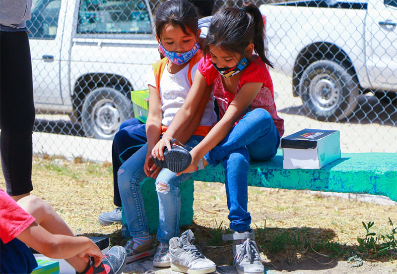 Los pequeños se mostraron agradecidos y sonrientes al recibir sus cajas con zapatos y juguetes. Finalmente, se tomó una fotografía grupal, respetando la sana distancia entre los niños y las autoridades de las tres instituciones.