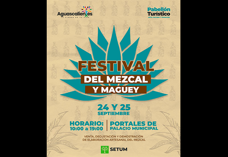 El Municipio de Aguascalientes, a través de la Secretaría de Economía Social y Turismo Municipal, invita a los ciudadanos y ciudadanas a acudir al Festival del Mezcal y Maguey, el cual se llevará a cabo este 24 y 25 de septiembre en los portales de Palacio Municipal, en un horario de 10 de la mañana a 7 de la noche.