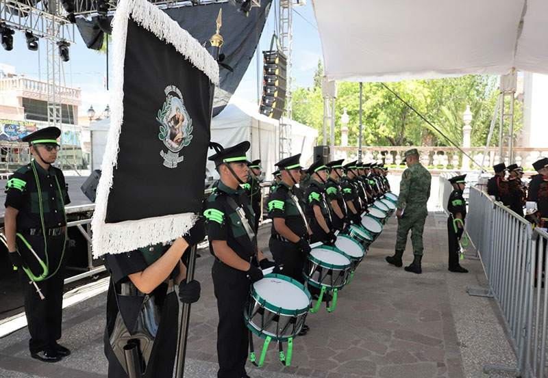 En otras actividades, también se realizó el Concurso de Bandas de Guerra y Escoltas, entre escuelas y agrupaciones de la región, mismo que fue encabezado por el titular de la Comisión de Agua Potable, Alcantarillado y Saneamiento (CAPAS), César García, además de maestros de la materia y personal de la Secretaría de la Defensa Nacional, quienes realizaron el Pase de Revista.