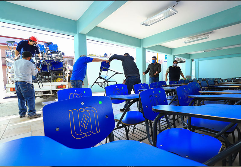 2 mil 180 pupitres se donaron a 20 instituciones de educación pública en el Estado, como escuelas primarias, secundarias y diferentes subsistemas de nivel medio, como CBTIS, CONALEP, entre otros.