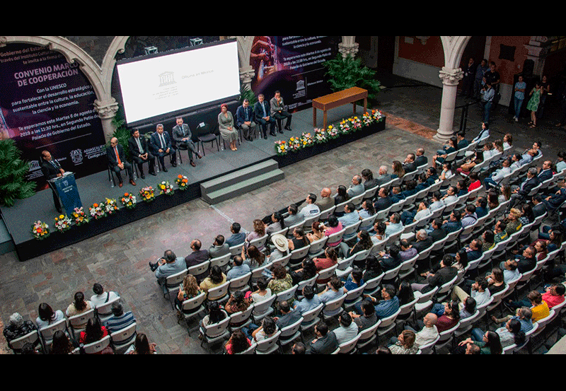 El Gobierno del Estado de Aguascalientes firmó un convenio marco de cooperación con la UNESCO con el objetivo de lograr el apoyo y el acompañamiento de este organismo internacional para consolidar la política pública estatal de cultura y arte, lo cual se logrará a través del desarrollo de cinco proyectos de amplio alcance para el beneficio de la entidad.
